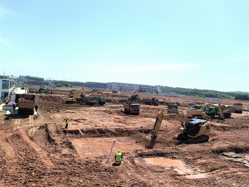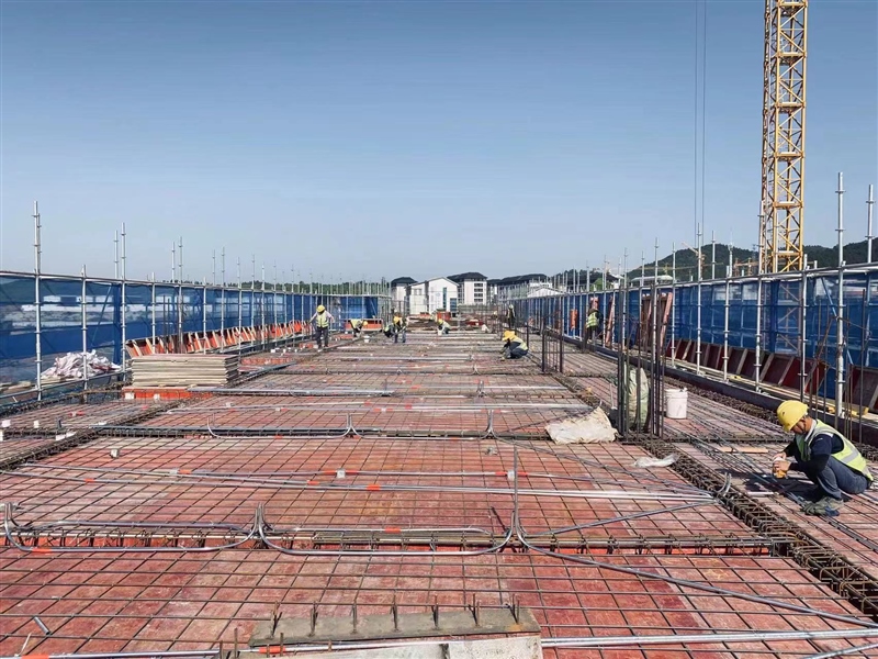 在高級技工學校項目現場,建筑工人們正在各自負責的區域緊張而有序地工作,有的負責綁扎鋼筋,有的負責混凝土澆筑,有的負責模板支架……各類機械作業聲轟鳴不斷,呈現出一片繁忙景象。