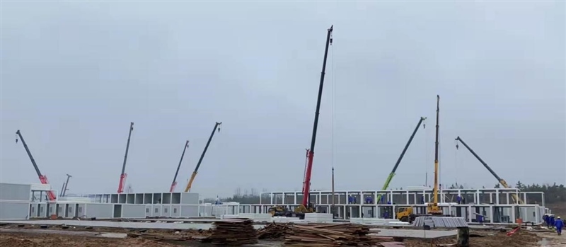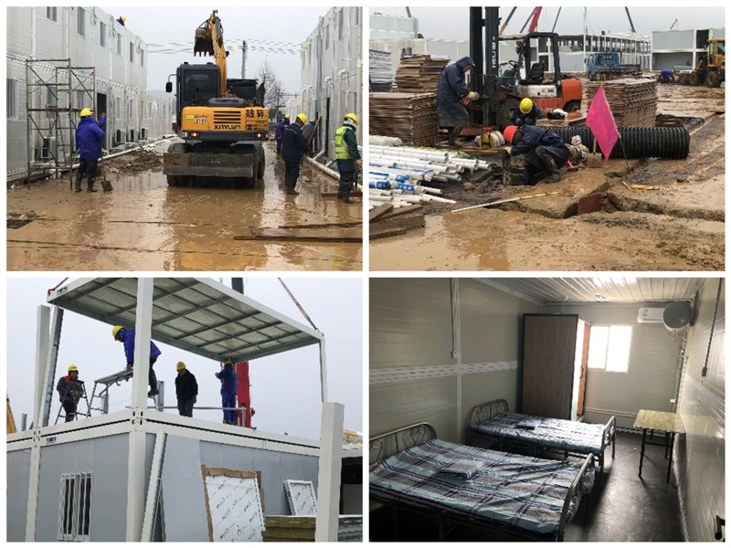 截至2月11日,隔離點項目準備區折疊房安裝完成,折疊房室內家具、空調、熱水器、淋浴房、水電正在有序安裝中;隔離區板房室外電力電纜井砌筑、緩沖區板房已安裝完成;污水處理設備正在安裝中,室外走道支模和路燈線路在準備中。