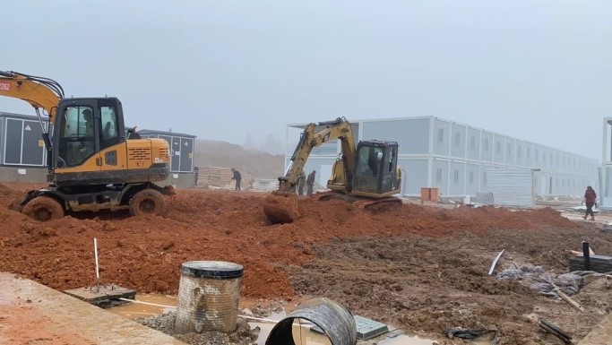 2月14日,宣州區疫情防控臨時隔離點項目現場機器聲轟鳴、腳步聲交響,新一天的施工作業從漫天大霧的清晨里井而有序的展開。