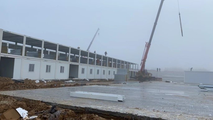 項目現場,房屋班組持續推進隔離區板房安裝,空調、熱水、家具班組配合完成室內部分設施安裝,室外附屬班組利用晴好天氣搶建室外走道、圍墻,搶鋪綠化草皮……各功能班組交叉作業,趕進度、搶工期,全面梳理每天工作內容,嚴把施工質量、嚴管作業安全、嚴控施工進度,為完成目標任務而不懈努力。他們始終堅守在自己的陣地上,多少個日夜里,他們忘記了寒冷、忘記了辛苦,甚至忘記了與家人團聚的日子,只為完成肩上的使命,確保隔離點按時完工。