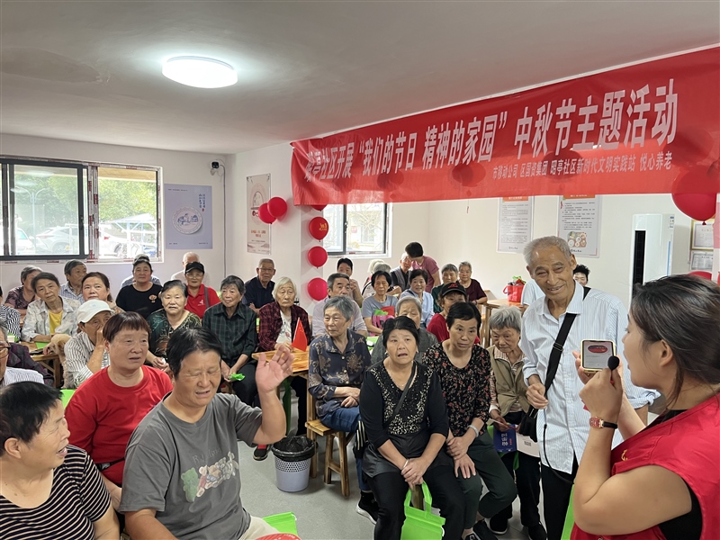 志愿者首先為大家講解中秋節的來歷、習俗以及神話故事等,隨后開展了猜謎領月餅趣味小活動,社區居民們踴躍參與,現場一片歡聲笑語。