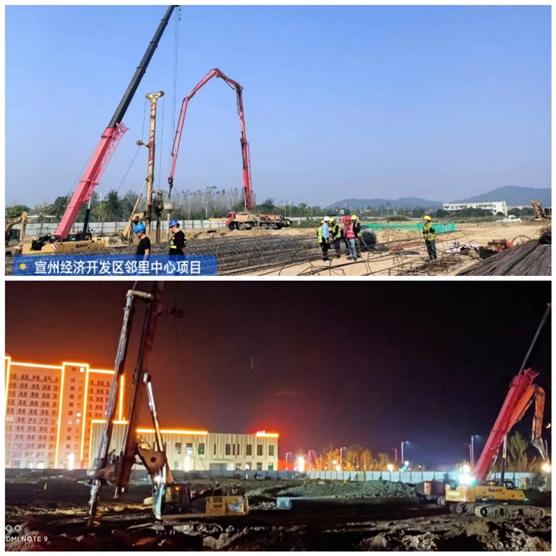 宣州經濟開發區鄰里中心(二期)項目工程建設晝夜運轉,全力以赴搶任務,爭分多秒保進度。