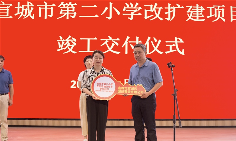 由宣城市宣州區國投置業有限公司承建的宣城市第二小學改擴建項目于2024年1月17日正式開工,在各成員單位的密切配合及共同努力下,克服高溫、梅雨等不利因素,僅僅8個月時間高標準高質量完成項目建設如期交付。2024年8月28日上午在市二小新校區成功舉辦竣工交付儀式,為宣城市教育版圖再添璀璨光輝。區教體局、區國資集團、市二小、鰲峰公司相關負責人出席儀式,各參建單位代表參加此次交付儀式。