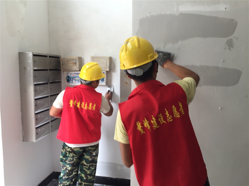 8月26日-8月30日,志愿服務隊來到鉆石鑫城小區開展小區清潔志愿服務活動。隊員們對小區單元樓道墻面上、信箱上的涂鴉“牛皮癬”廣告進行清理,給墻面重新刮膩子、刷涂料,為居民營造良好的生活環境。